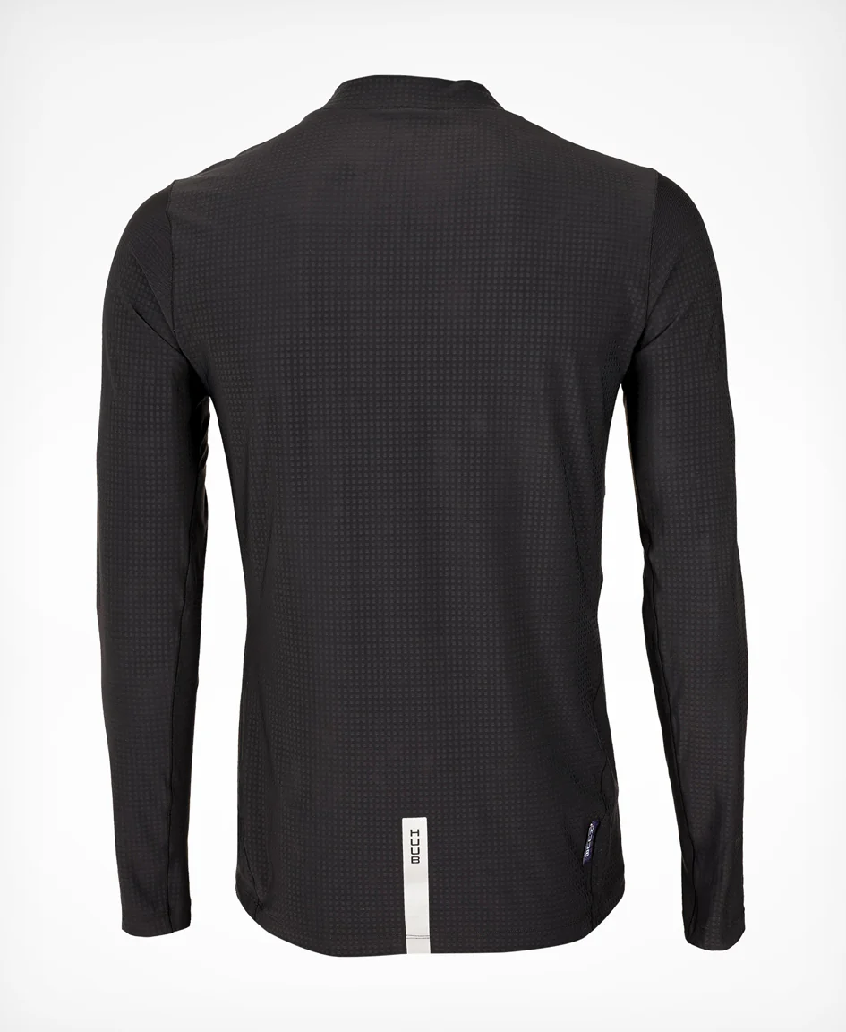 A lightweight quarter Zip Long-sleeved training t-shirt acting as sweat-wicking base layer or training layer.